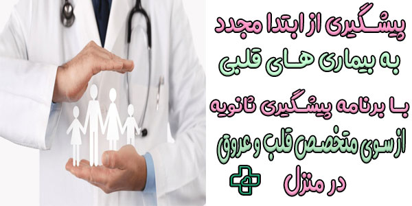 | 1 | معاینه | گرفتن فشار خون اصولی، گرفتن ضربان قلب اصولی، شنیدن صداهای قلبی، اخذ تست نوار قلب، انجام اکوکاردیوگرافی در منزل |